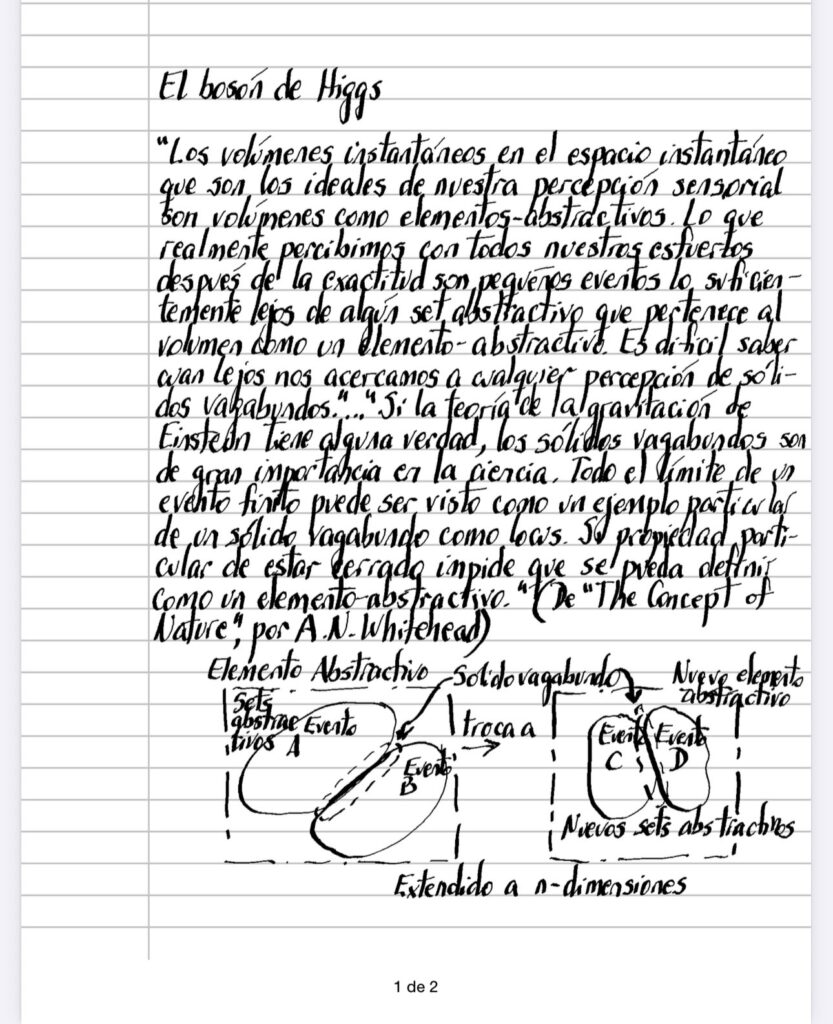 «Los volúmenes instantáneos en el espacio instantáneo que son los ideales de nuestra percepción sensorial son volúmenes como elementos-abstractivos. Lo que realmente percibimos con todos nuestros esfuerzos después de la exactitud son pequeños eventos lo suficientemente lejos de algún set abstractivo que pertenece al volumen como un elemento-abstractivo. Es difícil saber cuan lejos nos acercamos a cualquier percepción de sólidos vagabundos.»…»Si la teoría de la gravitación de Einstein tiene alguna verdad, los sólidos vagabundos son de gran importancia en la ciencia. Todo el límite de un evento finito puede ser visto como un ejemplo particulae de un sólido vagabundo como locus. Su propiedad particular de estar cerrado impide que se pueda definir como un elemento-abstractivo.» (De «The Concept of Nature», por A. Whitehead)