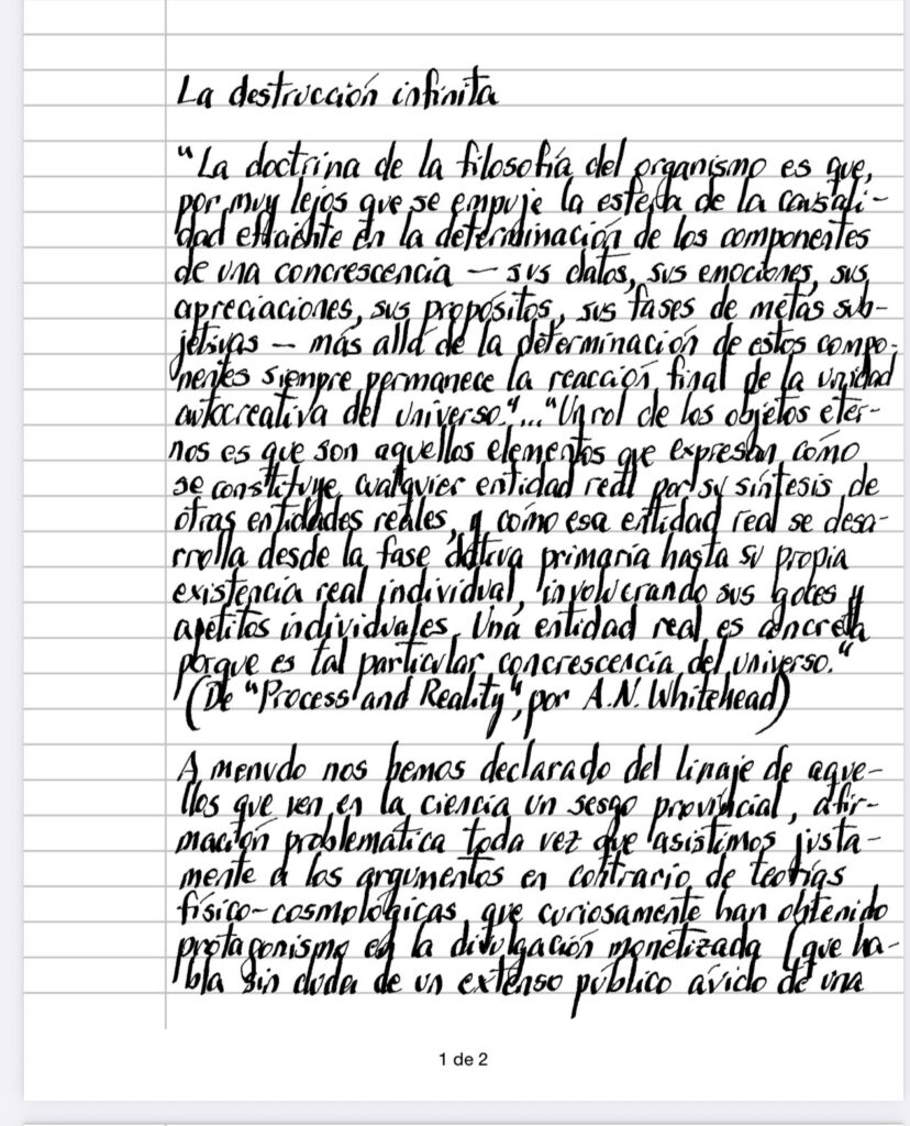 A menudo nos hemos declarado del linaje de aquellos que ven en la ciencia un sesgo provincial, afirmación problemática toda vez que asistimos justamente a los argumentos en contrario de teorías físico-cosmológicas que curiosamente han obtenido protagonismo en la divulgación monetizada (que habla sin duda de un extenso público ávido de una teoría del todo que nos deje en paz, que no sorprendería si fuera el mismo que consume diversas y variadas propuestas – siempre pagas, por supuesto – de ansiados y amigables nirvana) de sus pretendidas (y siempre unificaciones), de las que sospechamos algunas causas de sus fracasos (que no impiden la continuación de una búsqueda que se convertiría en heroica en la convicción de su inevitable frustración), cuando nos demoramos en las bases de la relatividad (y podríamos hacer ejercicios similares sobre la teoría de las cuerdas, etc), que otorga el caracter de «pegamento» a la velocidad de la luz y a su consecuente cono de causalidad (conformado por ct y -ct), afuera del cual no hay nada, constituyéndose en el límite del universo propuesto, que elimina el pasaje del tiempo en sus bordes (no hay tic-tac del reloj viajando a la velocidad de la luz) pero que a la vez deja preparado su desmoronamiento en la posibilidad de la inflación primera y la posible expansión «actual», ambas a una velocidad que deja entonces a nuestro universo afuera (el «momento» posterior al Big Bang y la expansión no tendrían ni historia ni se avendrían al principio de conservación de energía/ información), iluminándonos el intento de Whitehead que ve en las indudables concrescencias que nos rodean, una contigencia más que depende, una vez mas, de principios que la exceden, dejando ahora a los objetos eternos a la espera de lo que los destruirá.